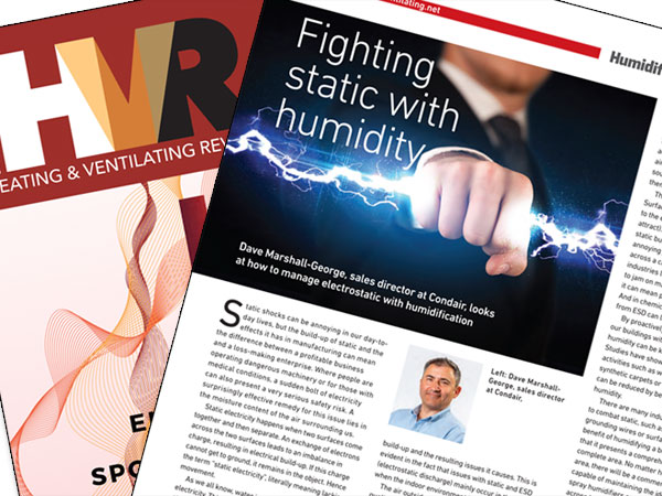 Humidification is a very effective way to eliminate the build-up of static electricity in manufacturing environments. By keeping the humidity at 55%RH the moisture content of the air is a natural conductor and earths any potential static charge.